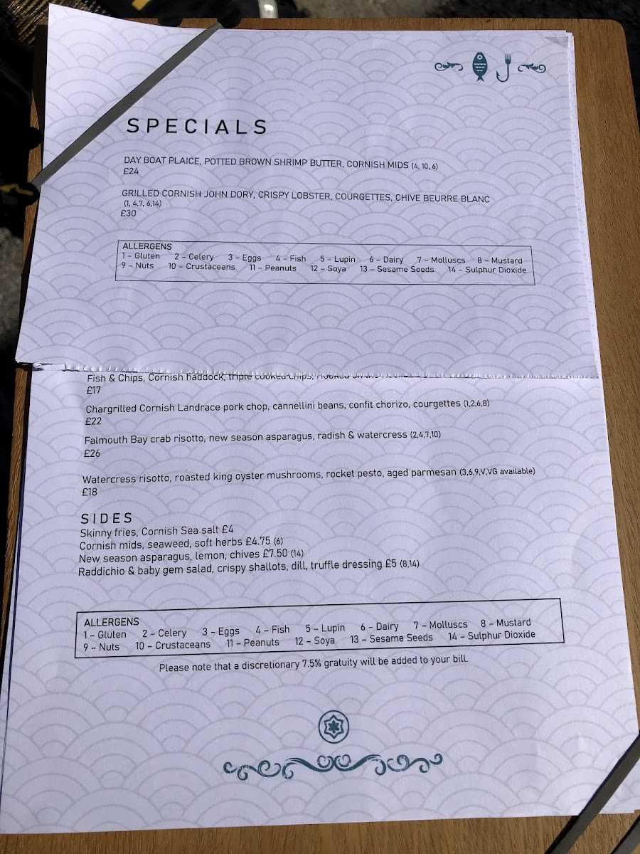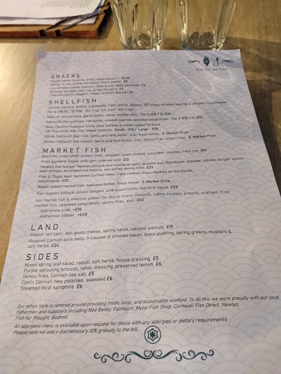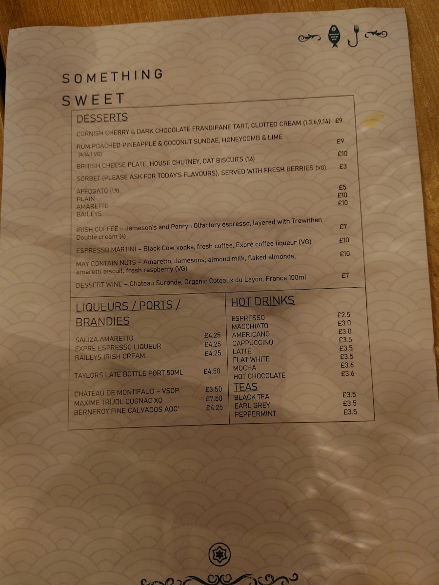 Complementing the seafood experience, the sea salt skinny fries and garlic butter Cornish new potatoes add a delightful touch to your meal, each at £6.00. End your dining journey with one of their exquisite liqueurs or ports, expertly curated to enhance your evening.